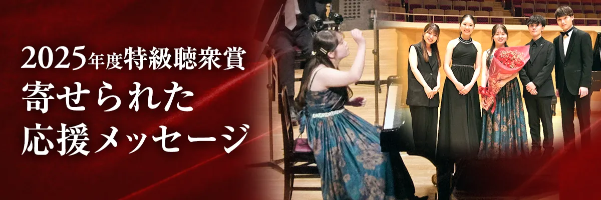 2025年のピティナ特級では、二次予選~ファイナルを通じて応援したい出場者へ投票できる「オンライン聴衆賞」、また特級ファイナルの会場に来場いただいた方が投票される「ファイナル聴衆賞」の取り組みを実施しました。その投票とともに、多くの応援メッセージをいただきましたので、その一部を公開いたします。
